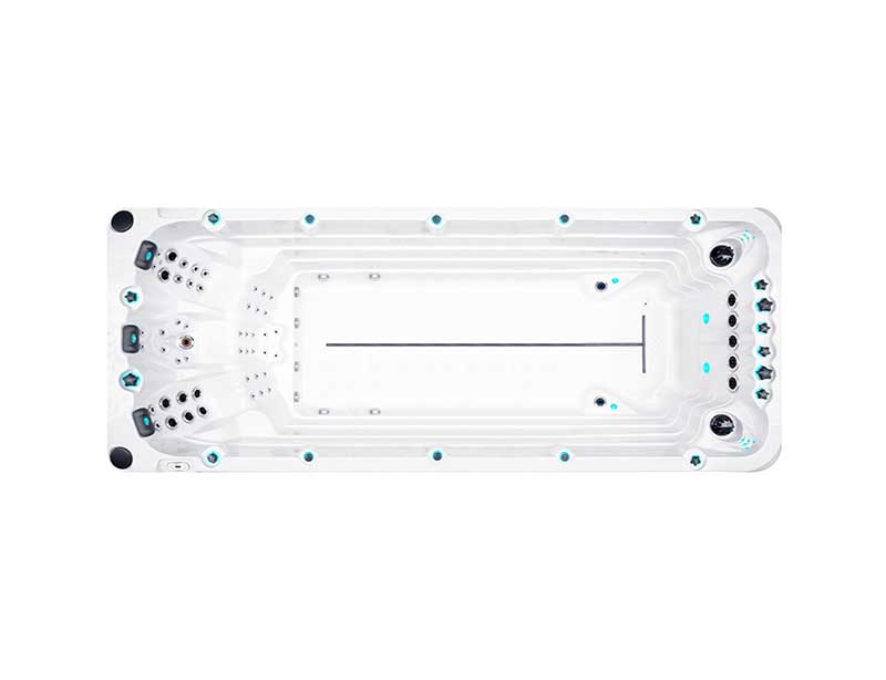 The new Activity 2 Swim Spa is a longer version of our current model Activity 1. It has been added to our Passion Swim Spas collection because all swimmers who have tested our River Swim System in Activity 1 are thrilled. The River Swim System provides a continuous stream of water across the width of the pool, giving the swimmer a strong current to swim against. At the same time, the water surface is unbroken and remains calm, so you can keep your head dry without any problems. For all swimmers, the Activity 2 Swim Spa makes the dream of swimming and training efficiently in your own garden come true.