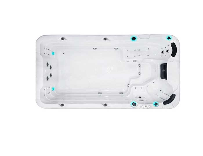 The Aquatic 1 is the ideal swim spa when space is ata premium. At 4 Mtr long, the Aquatic 1 provides ampleswimming space while at the same time offering comfortable seating for quiet relaxation. Powerful pumpsgenerate a strong current, allowing you to swim in placefor an exceptional workout. All Passion Swim Spas comestandard with interior and exterior LED lighting, providingelegant lighting accents to your spa experience.
