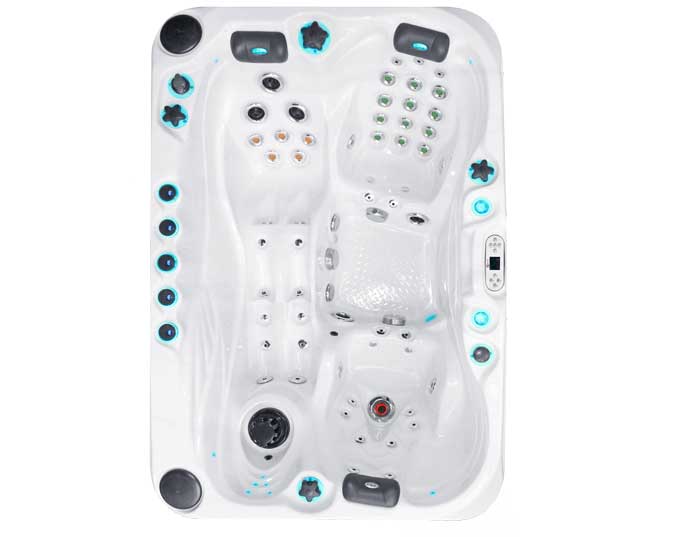 Efficient use of space and exceptional variety of massage experiences define the Sensation Spa. The offset bucket seats allow the users to face each other without having to share foot space, and the comfortable lounge seat allows even a tall person to recline in comfort. The Sensation is equipped with a multitude of massage experiences, including our exclusive Aqua Rolling Massage™ that pampers and massages your body just like a real masseuse. Multiple types of massage, substantial jets, water fountains, audio system and our exclusive Synergy Water Maintenance System combine to make the Sensation the most highly featured 3-person spa available.