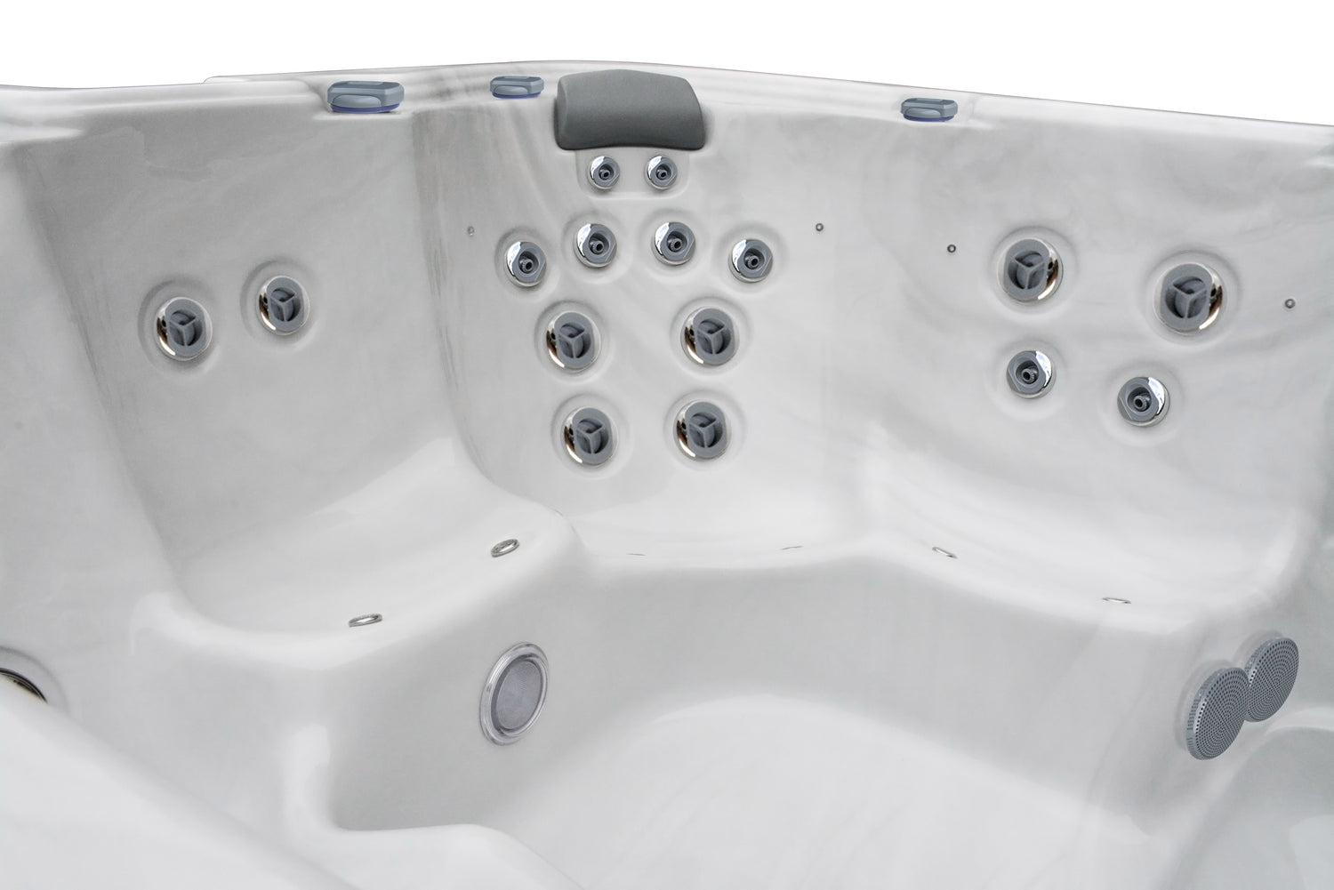 It uses 10mm high density insulation foaming, 8mm spa shell and 100mm soft full foam insulation sprayed on the inside of the spa giving high energy efficiency.